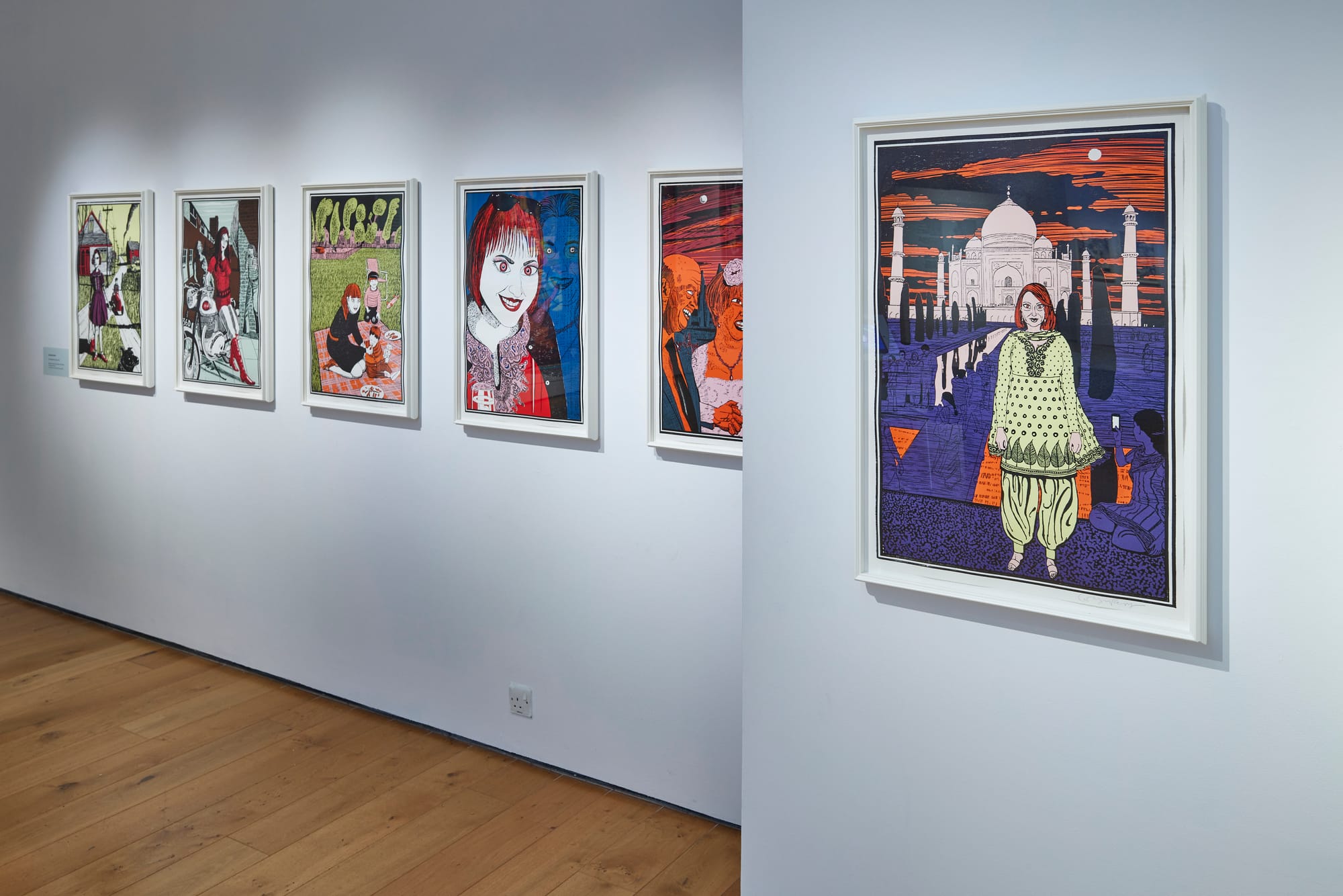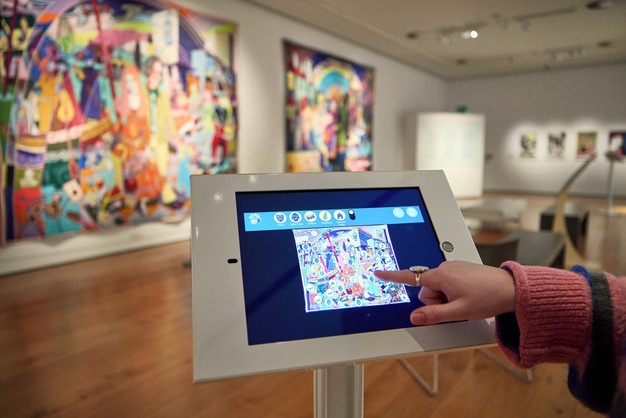 The Gallery is currently home to the grandly woven story of Julie Cope, bringing the heart of The Essex House to the people of Winchester. Lively and spirited in colour, composition and detail, the chaotic kaleidoscopic visions of the tapestries pull you in with their mesmeric vastness and also ingratiate themselves with the viewer. Be it the Astra driven by Dave (Julie's notorious first husband) or the blue-striped plastic bag of a popular supermarket, we can all find something relatable in the tapestries. The power of Perry’s craft works on multiple levels bringing diverse layers of engagement. This article looks at some of the reactions drawn out by the tapestries.