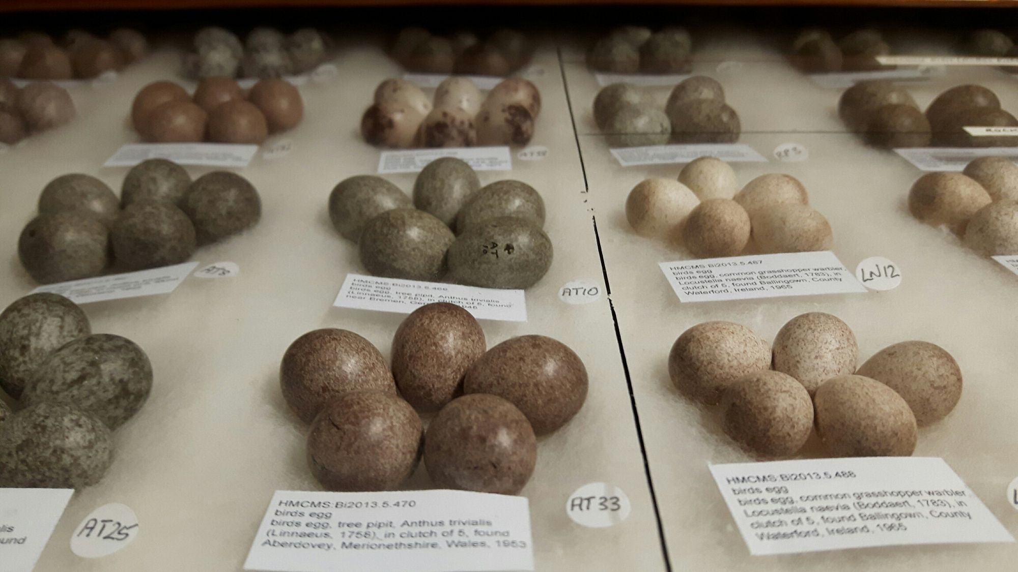 So what can we learn from the eggs that we hold in the collection? At the most basic level, they can be used to illustrate what the eggs of individual species look like. But more can learnt from them. When eggs were originally collected, information was also recorded, such as where the eggs were found, how many were in the cluster and the species of the bird. Over a period of time, that information, together with the recording of the physical attributes of the egg, such as thickness of shell and colour, can be used to investigate how species are faring in the face of issues such as changes in land use and pollution.