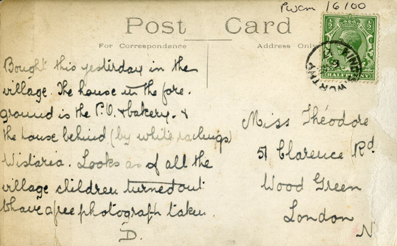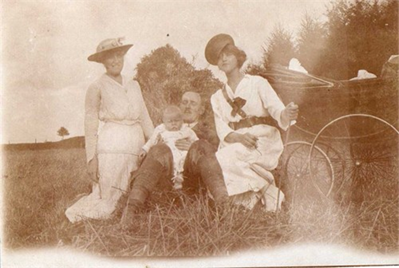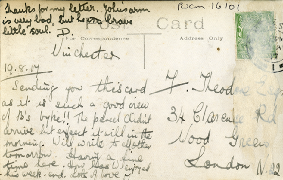 The postcard was posted by Dorothy Theodore to her sister in London. Further postcards showing local scenes from Dorothy kept her family informed of her life in Kings Worthy where she lived with her husband, 2nd Lieutenant Basil Northcote and their young son John, born in 1917. The family lived in Kings Worthy because Basil was serving with the British Army at one of the camps on the outskirts of Winchester. Descendants of Dorothy and Basil were found on Ancestry and they kindly provided a photograph of the family.