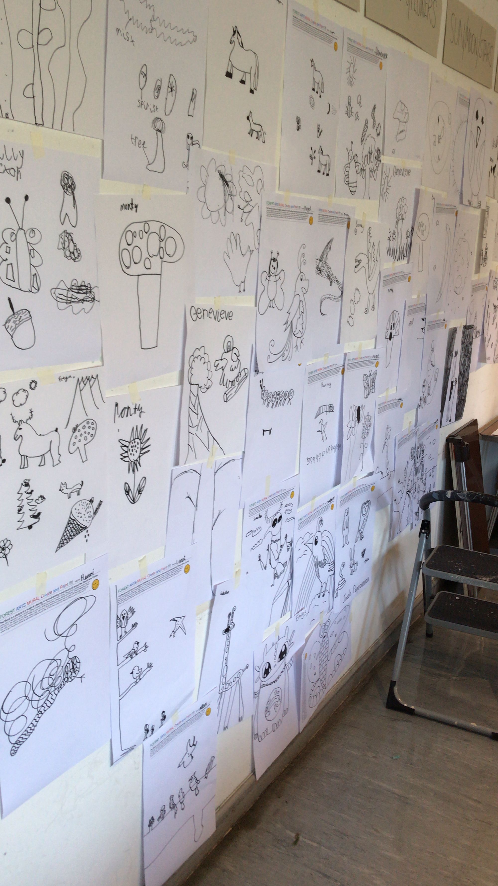We had over 40 children participate in our sessions as they each made their marks within the vibrant piece. We asked for magical forest animals, items to do with the arts centre and self-portraits to really add that personal feel, reflecting that sense of community for which Forest Arts is well known.