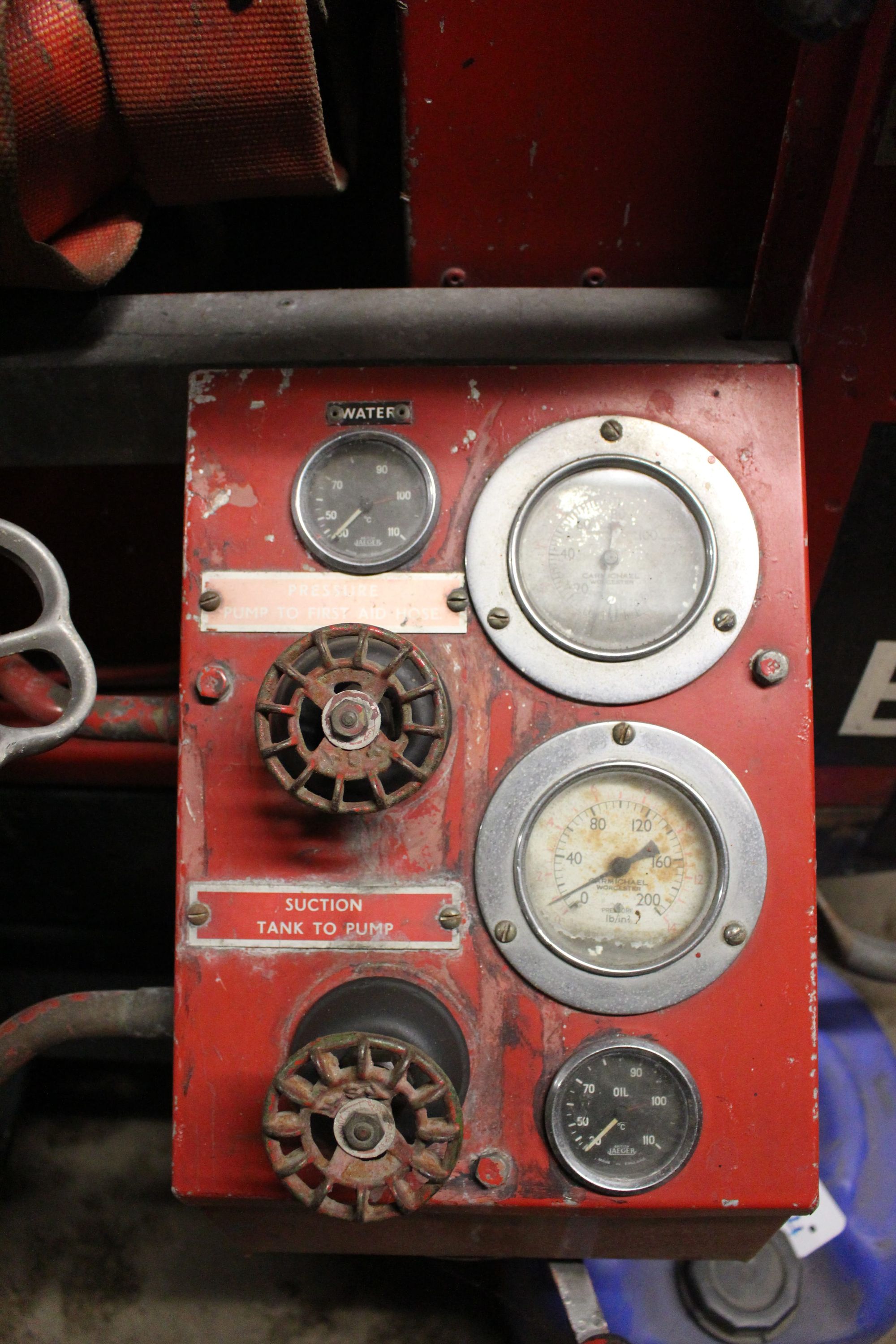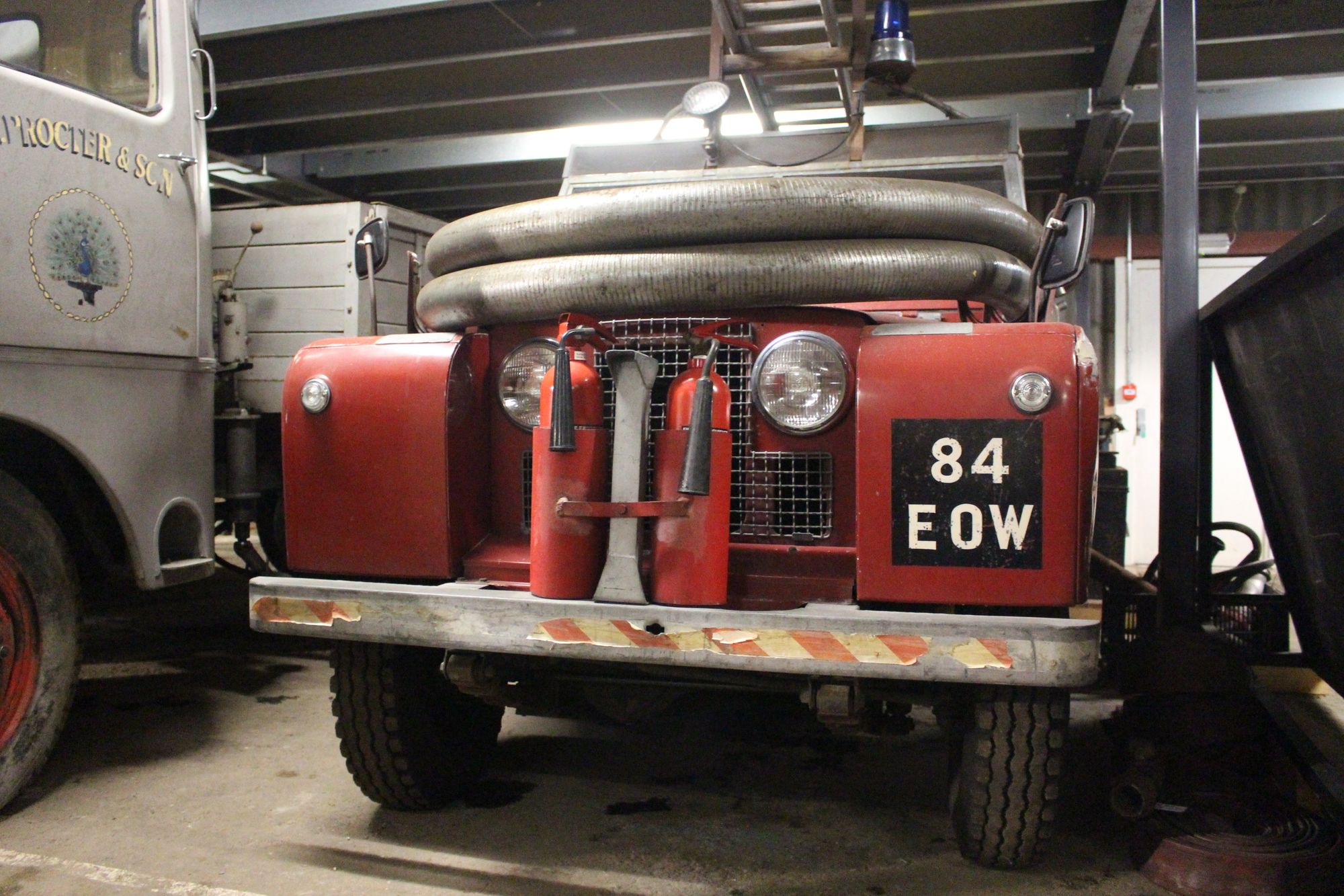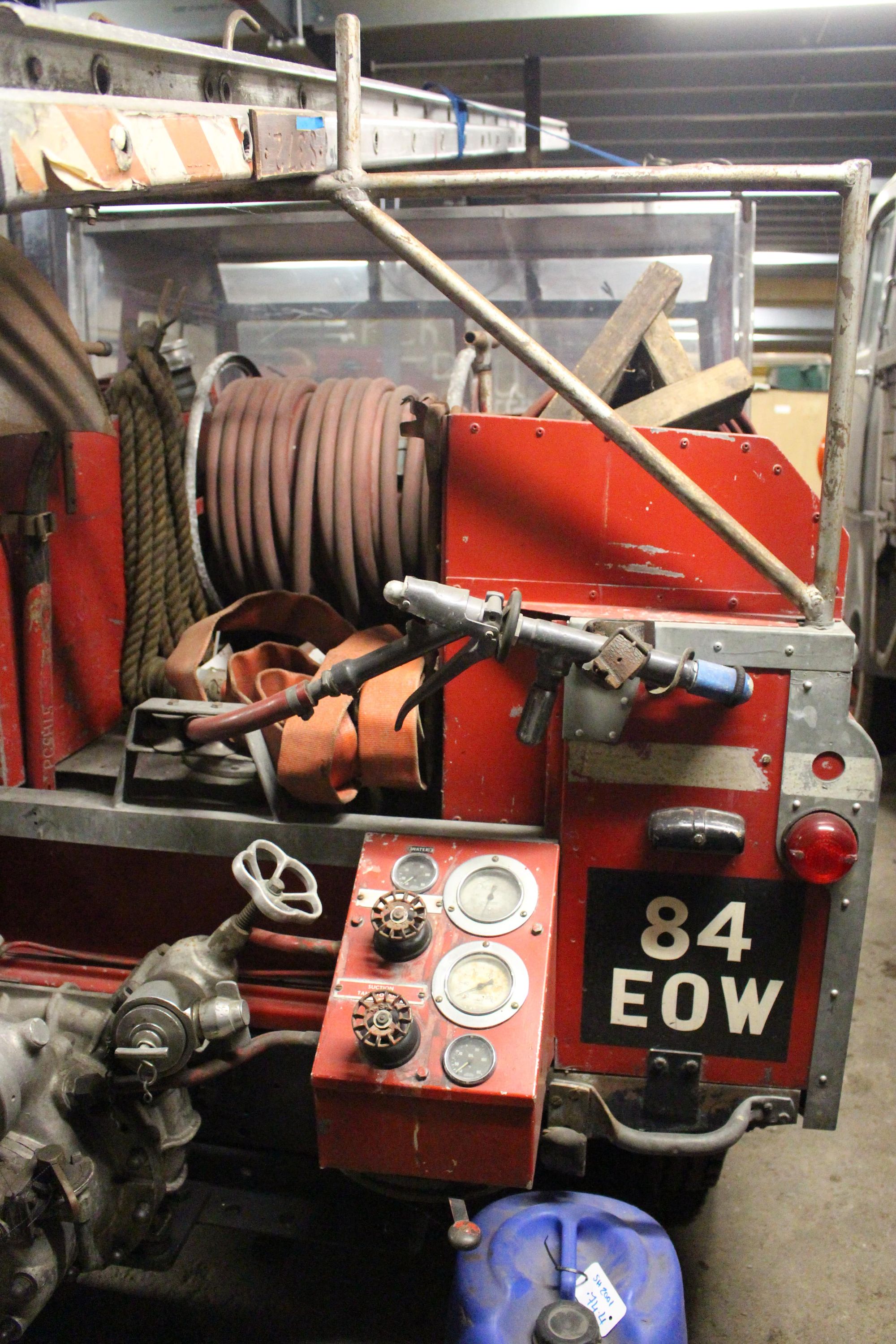 Based on a series II Land Rover chassis, this particular Land Rover was converted for use as a fire tender by the Company Carmichael and Sons Ltd of Worcester. Founded in 1849 as a coach building company, Carmichael diversified into specialised agricultural bodywork. In World War II, they produced portable fire pumps to help the war effort and, in 1947, began to produce full fire fighting vehicles; the first one being built for the local Worcester fire brigade. Carmichael converted this Land Rover to a fire tender in 1963 and it was given the model name “Redwing”.