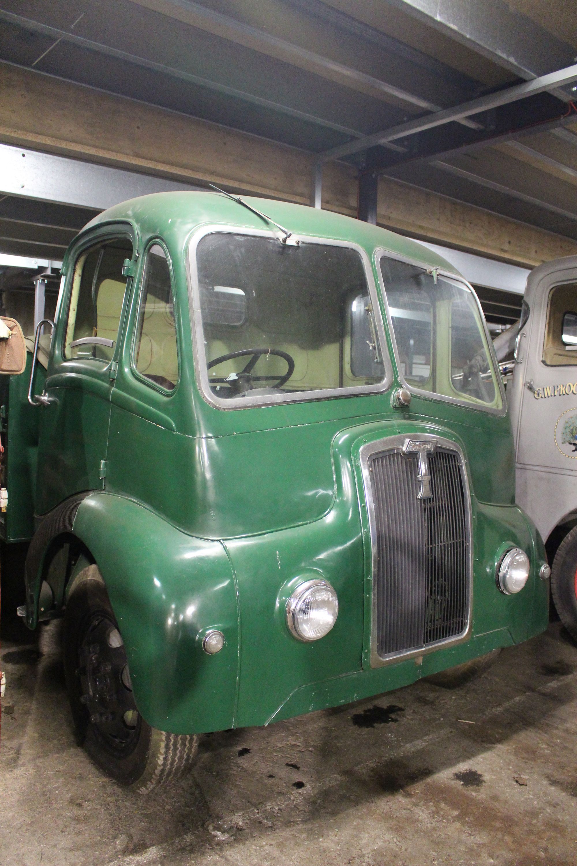 This unusual green Thornycroft Trident lorry was converted for use as a fire tender at the Thornycroft works in Basingstoke. It was produced in 1951 and was probably never given a registration number as it didn’t leave the Thornycroft site (HMCMS:SH1985.34)