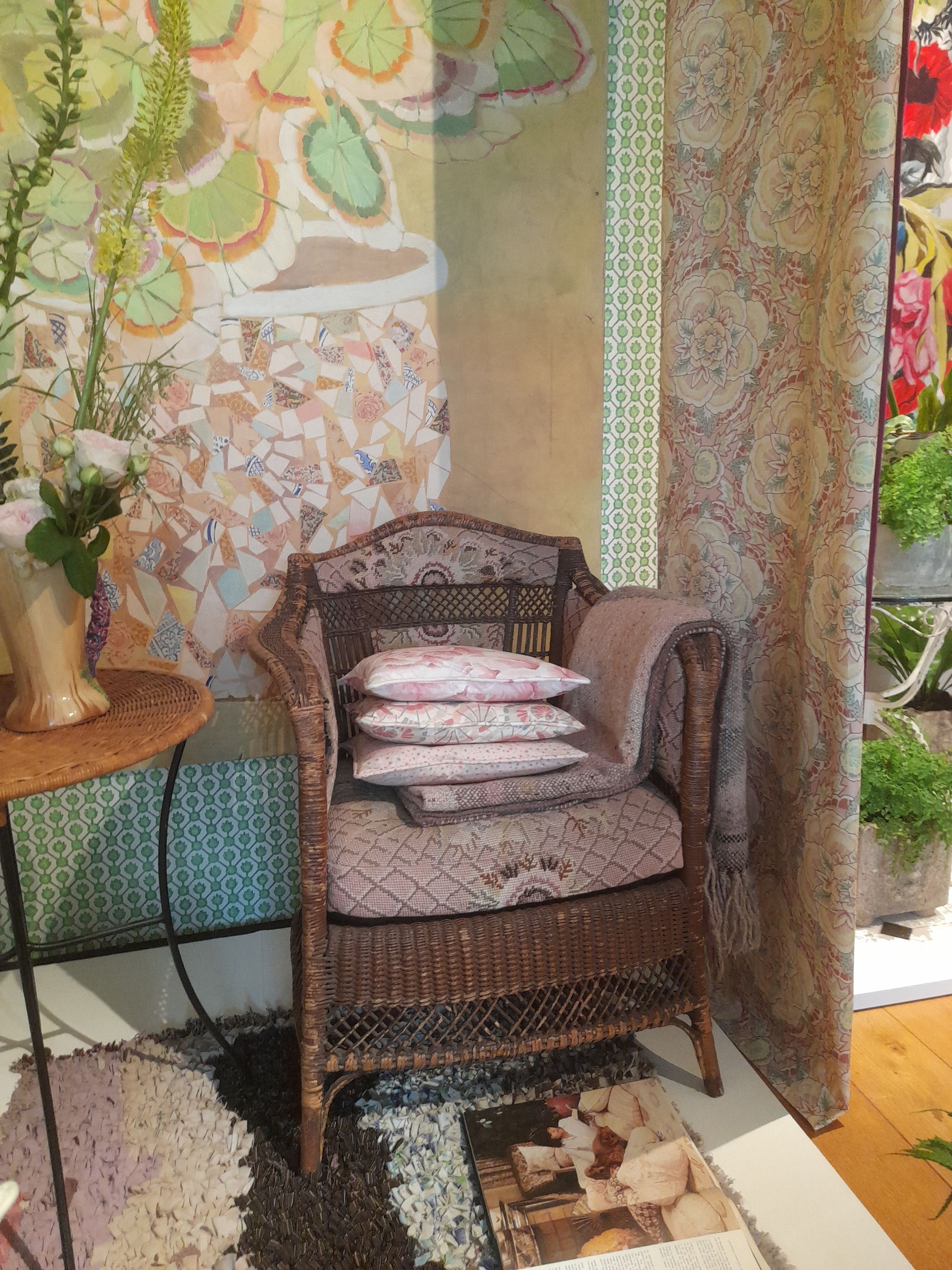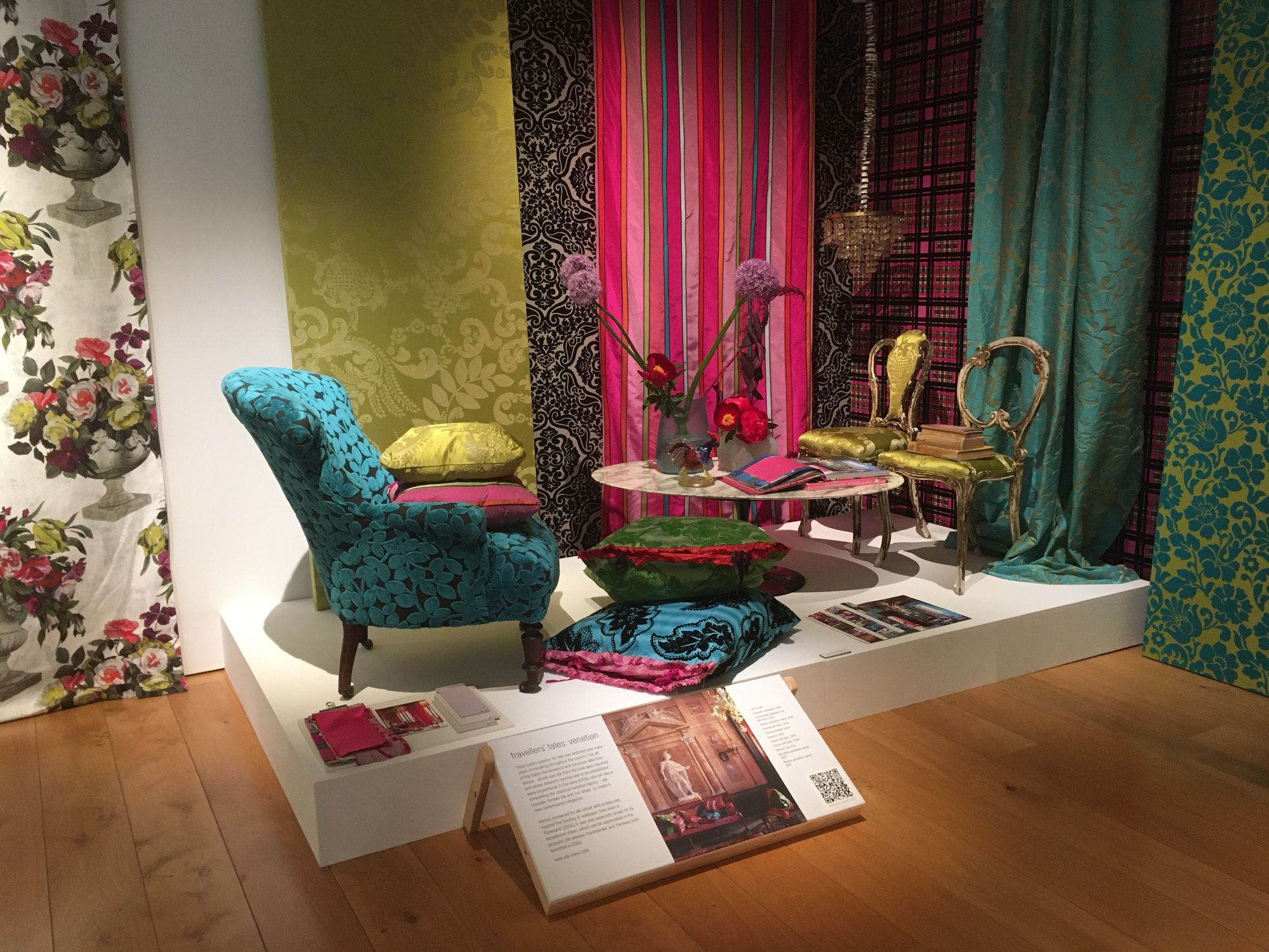 There are 14 display sets in all, charting the history of Designers Guild design, starting with a collaboration with Kaffe Fassett, to the latest Essentials range. Many of the items on display are from the archive, with some no longer in production. Several of the fabrics were reproduced specifically for the exhibition.