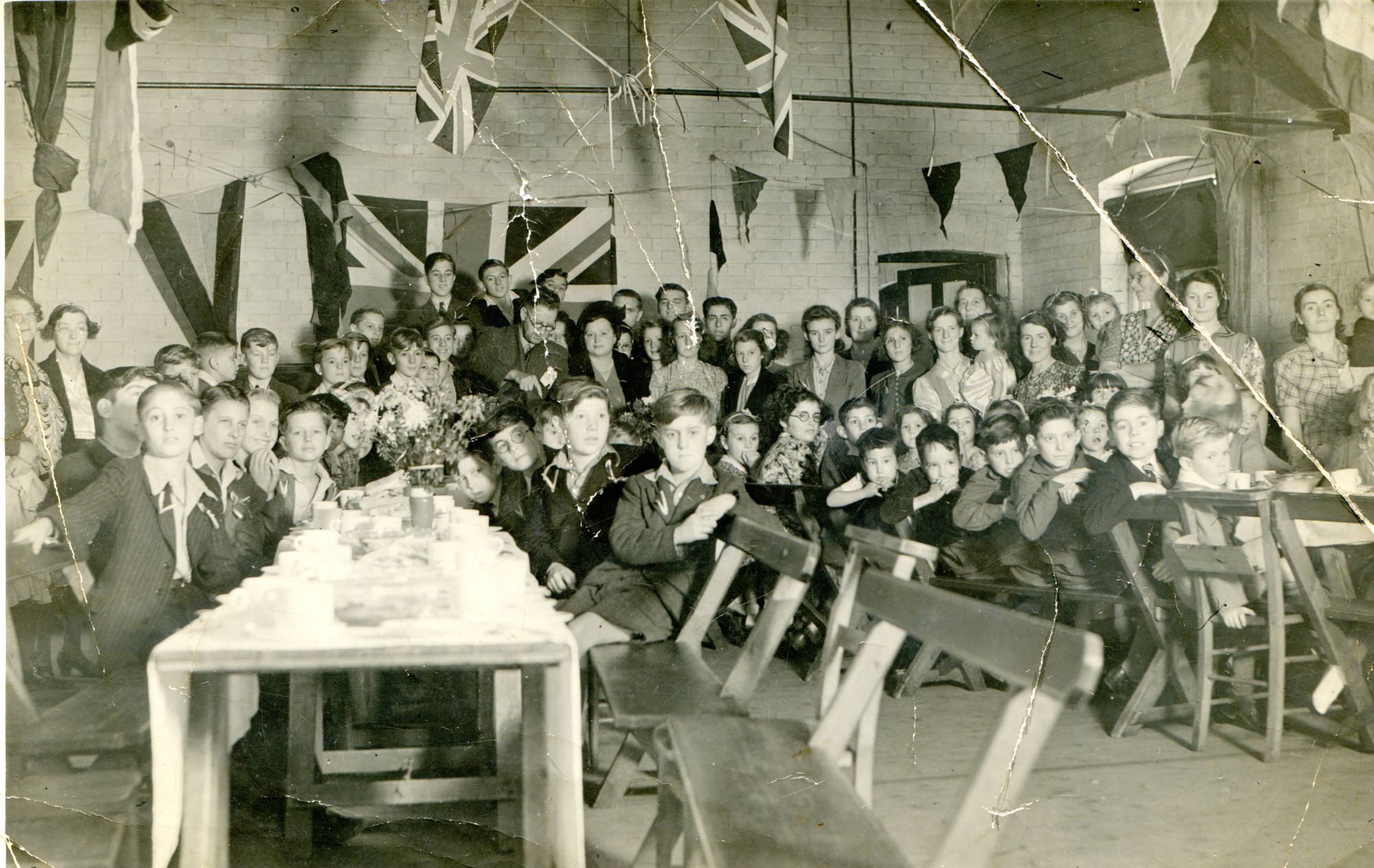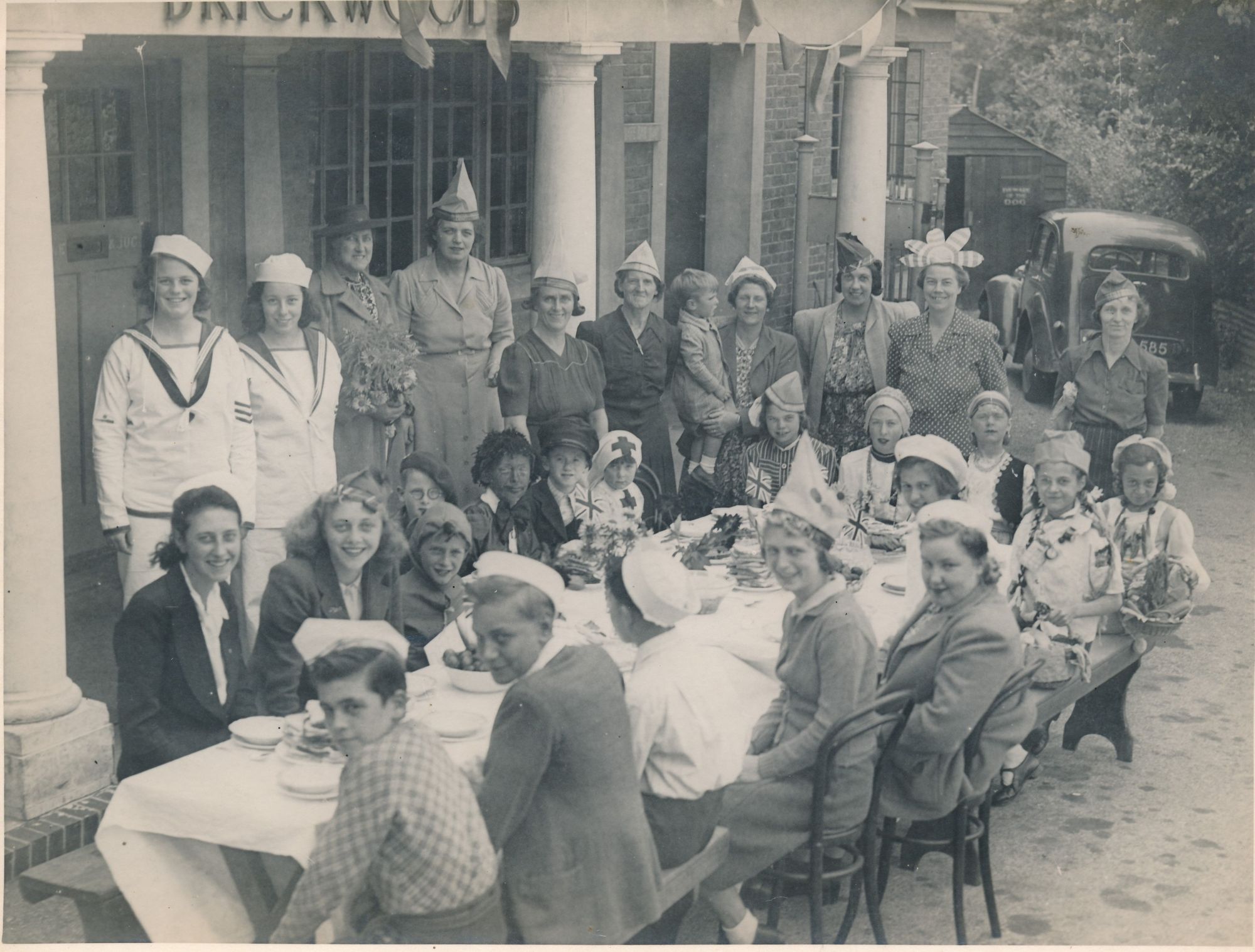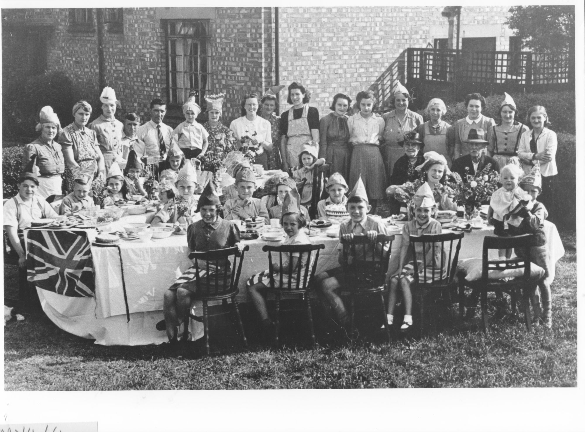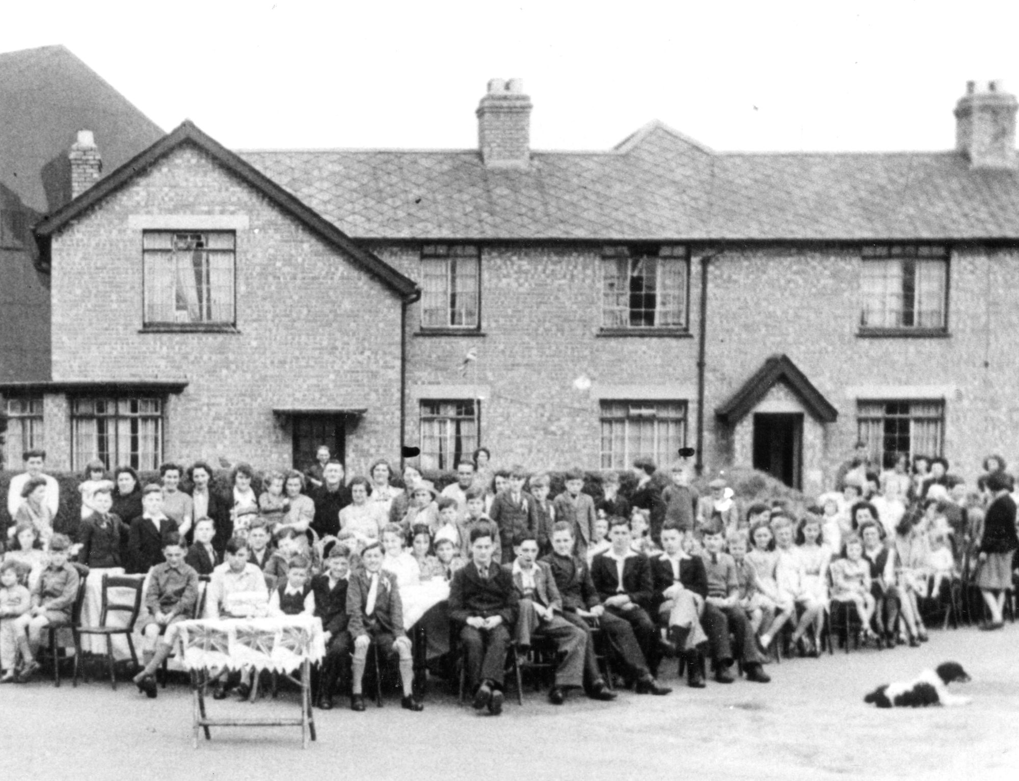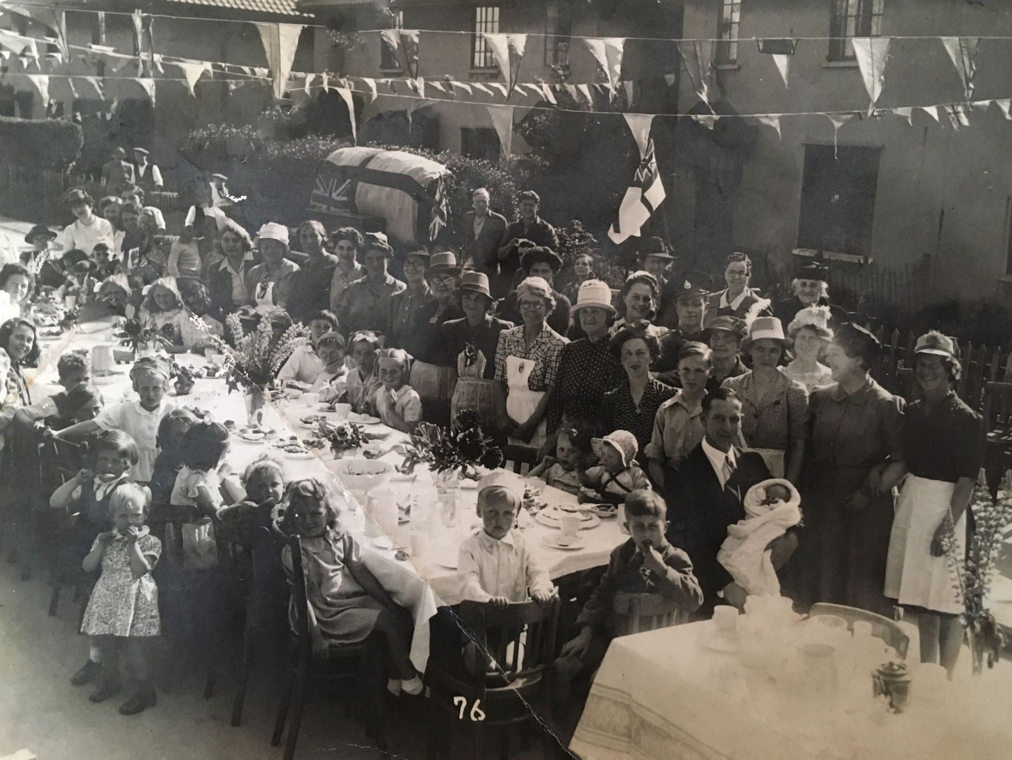 Photograph showing view looking west of a VE Day street party along Soper Grove, Basingstoke. (Image courtesy of Hampshire Cultural Trust)Street party along May Street, Basingstoke. (Image courtesy of Hampshire Cultural Trust)South west view of street party along May Street, Basingstoke. (Image courtesy of Hampshire Cultural Trust)