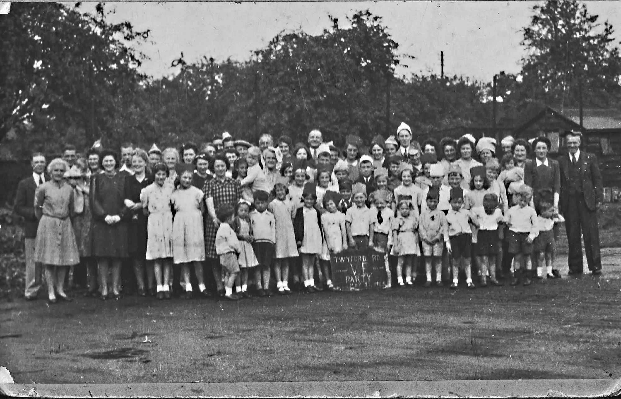 Group photo of VE Day party attendees, Addison Road, Eastleigh (Image courtesy of Eastleigh & District Historical Society)A large VE Day celebration at Campbell Road, Eastleigh (Image courtesy of Eastleigh & District Historical Society)VE Day celebration, Chamberlayne Road, Great Eastleigh Farm (Image courtesy of Eastleigh & District Historical Society)A large outdoor celebration at Cranbury Road, Eastleigh (Image courtesy of Eastleigh & District Historical Society)A VE Day party held at Cranbury Road Parish Hall, Eastleigh (Image courtesy of Eastleigh & District Historical Society)Celebrations in the street, High Street, Eastleigh (Image courtesy of Eastleigh & District Historical Society)Large VE celebration gathering, Nutbeem Road, EastleighRuskin Road VE Day celebrations (Image courtesy of Eastleigh & District Historical Society)An outdoor party to celebrate VE Day, Scott Road, Eastleigh (Image courtesy of Eastleigh & District Historical Society)VE Day celebrations. including Gyp the dog at Tennyson Road, Eastleigh (Image courtesy of Eastleigh & District Historical Society)Group photograph of VE Day celebrations, Twyford Road, Eastleigh (Image courtesy of Robert Winkworth)VE Day or VJ Day celebrations in September 1945, Drake Road, Bishopstoke, Eastleigh (Image courtesy of the Bishopstoke History Society)VE Day street party, Edward Avenue, Bishopstoke, Eastleigh (Image courtesy of the Bishopstoke History Society)Fancy dress VE or VJ Day celebrations on the back of a lorry, Bishopstoke, Eastleigh (Image courtesy of the Bishopstoke History Society)