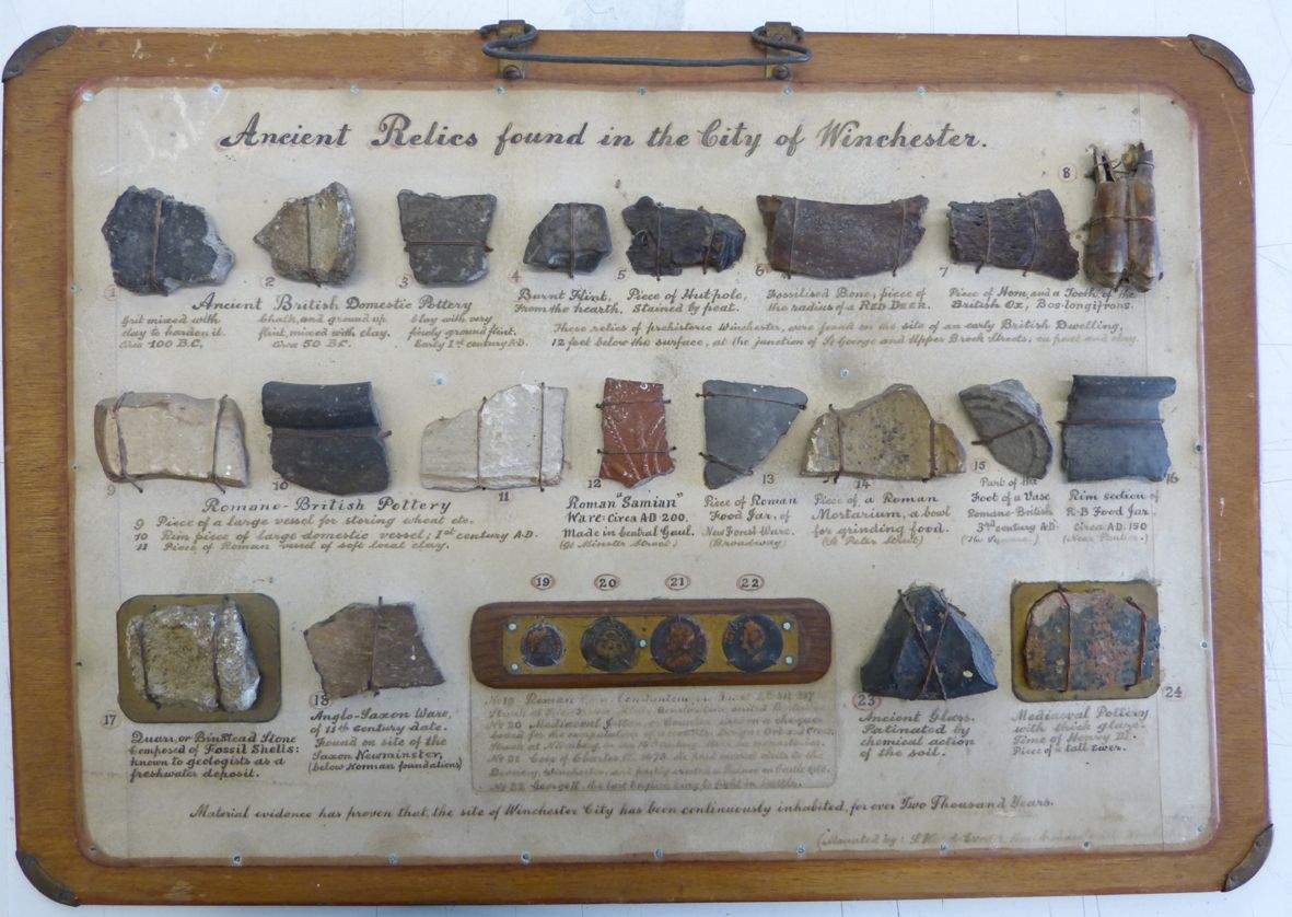 These boards and display boxes have become known as 'Ward-Evans boards', originally made up from objects from a particular location and often displayed at that place. Not all were put in public places; some were presented to private individuals and have been later given or sold to the former Winchester Museums Service.