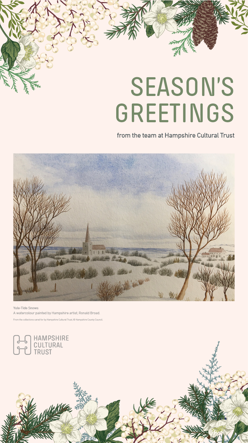 Our 2020 Christmas card features Yule-Tide Snows, a beautiful seasonal scene by the late Ronald Broad. This piece was part of a collection of 34 works bequeathed to HCT by Broad before his death in 2019.