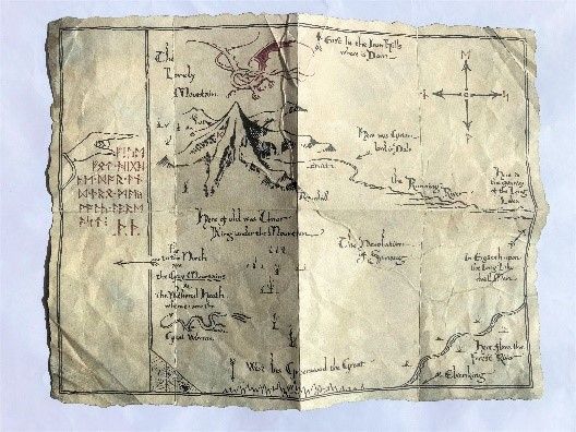 All objects seen on-screen in Peter Jackson’s movies had to be newly imagined, save for one - Tolkien’s own hand-drawn illustration of the dwarf Thorin’s map. Published within the first edition of The Hobbit, it served as the basis for the movie prop, recreated by Weta Workshop.