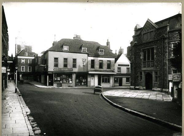 Taxidermy became popular in the 19th and early 20th centuries; this list on the Hampshire Cultural Trust Collections website features several Hampshire residents who were taxidermists by trade. One such man was William Chalkley of Winchester and some of his work can be found on the ground floor of Winchester City Museum. This includes an unusual piece featuring a group of animals playing a game of cards – see if you can spot it on your next visit! Chalkley’s shop was located in The Square, a stone’s throw from the museum. The property is now the site of a clothes shop, but the outside has changed very little since Chalkley’s day. The image below shows the shop around 1903. It remained in The Square until 1966, concentrating on the fishing tackle side of the business.