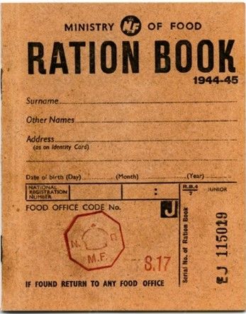During the Second World War, the British Government sponsored a network of canteens, called National Kitchens. Everyone was issued with a Ration Card to ensure fair access to food. Not all food was rationed - fish, fruit and vegetables were not. However, these items quickly became expensive and difficult to get.